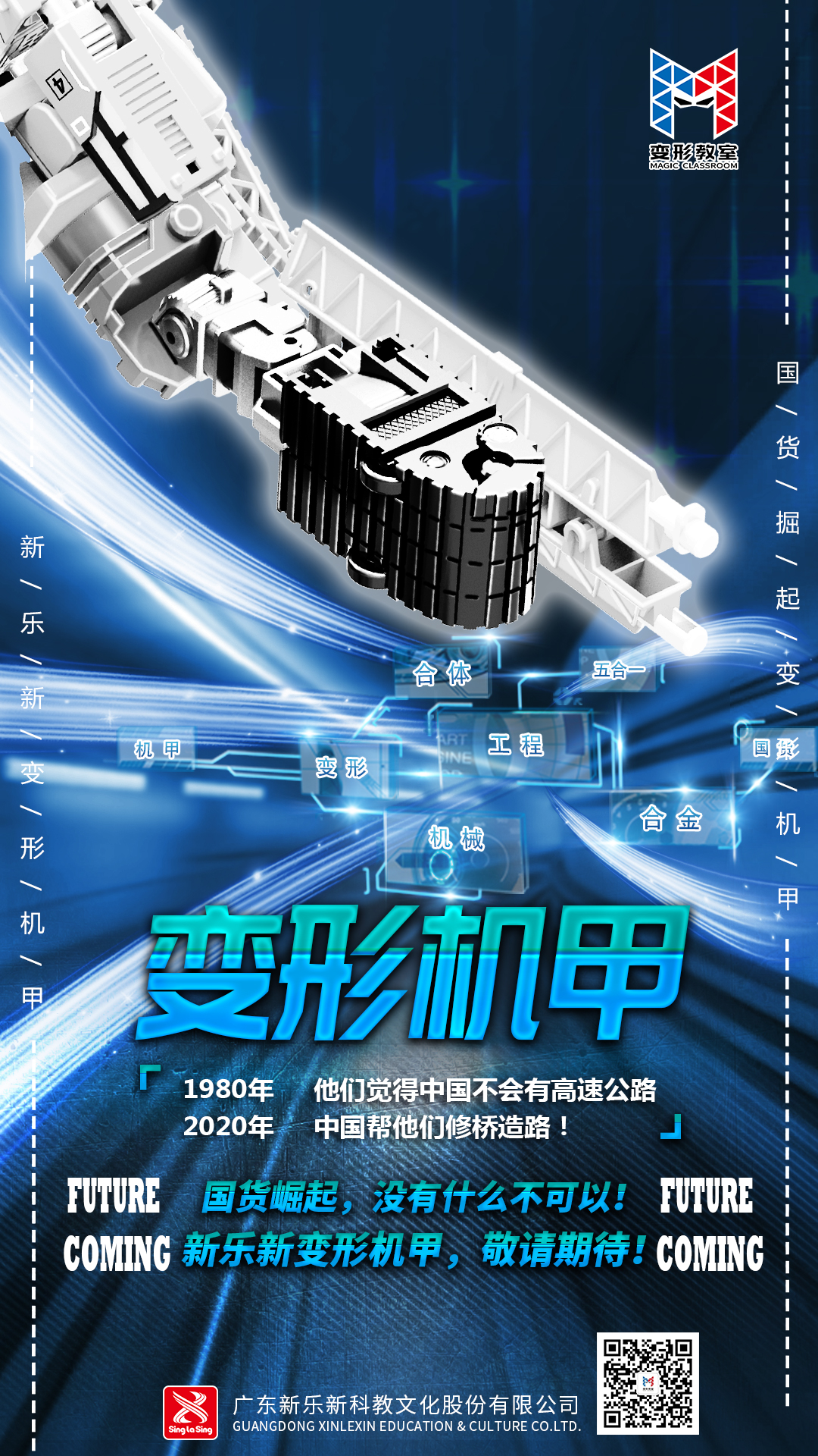 從此次發(fā)布的兩張預(yù)熱海報來看,第一張以基建工程為主。 文案的描述是: 1980年 他們覺得中國不會有高速公路 2020年 中國幫他們修橋造路! 國貨崛起,沒有什么不可以! 新樂新變形機(jī)甲,敬請期待! 海報暗喻改革開放初期中國基建落后,外國人覺得縱使改革開放了,中國基礎(chǔ)建設(shè)依舊會很落后。然而,現(xiàn)在中國獲得了基建狂魔的稱號,其工程技術(shù)領(lǐng)先世界,還為幫助了其它國家提供基礎(chǔ)建設(shè)解決方案。 從海報文案來分析,此次變形教室推出的新品疑似與基建工程相關(guān)聯(lián)的產(chǎn)品。 而第二張預(yù)熱海報,則把時間線定在了1985年。 1985年 他們覺得中國孩子不會有屬于自己變形玩具! 2021年 屬于中國孩子的變形玩具,配件多,能變形還能合體! 國貨崛起,沒有什么不可以! 新樂新變形機(jī)甲,即將來襲! 眾所周知,變形金剛就是在1985年進(jìn)入中國市場的,而文案描述中闡述了1985年,中國玩具數(shù)量少,可以用稀缺來形容,外國人覺得中國沒有品牌意識,中國的孩子是不會有屬于自己中國品牌的變形玩具。 而文案時間定在2021年,表示玩具配件多,能變形,還能合體。實(shí)錘變形教室今年新發(fā)布的變形機(jī)甲,是以合體為主題,并且搭配許多配件,可玩性大大提高。 據(jù)悉,新樂新變形教室的這款機(jī)甲變形產(chǎn)品近期已即將上市,根據(jù)以往變形教室推出的產(chǎn)品來看,新品機(jī)甲將秉承高質(zhì),多可玩性的特點(diǎn),甚至?xí)永m(xù)植物大戰(zhàn)僵尸變形版的合金件配置,更多詳細(xì)信息,我們拭目以待!