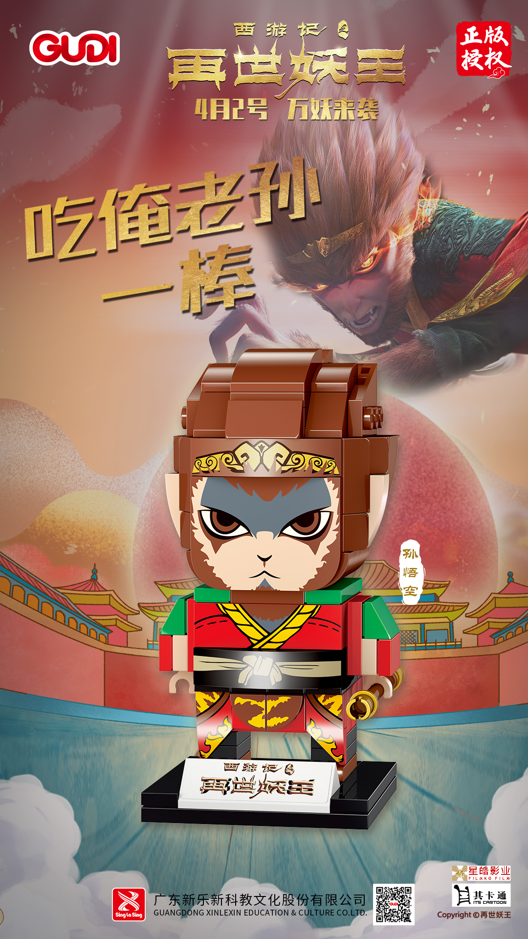 近日,隨著電影《再世妖王》上映,古迪積木官方爆出全新IP聯(lián)名款——古迪積木X再世妖王拼裝積木,再一次成為人們關(guān)注的焦點(diǎn)。首次曝光并推出市場(chǎng)的,是電影《再世妖王》的主角——孫悟空。