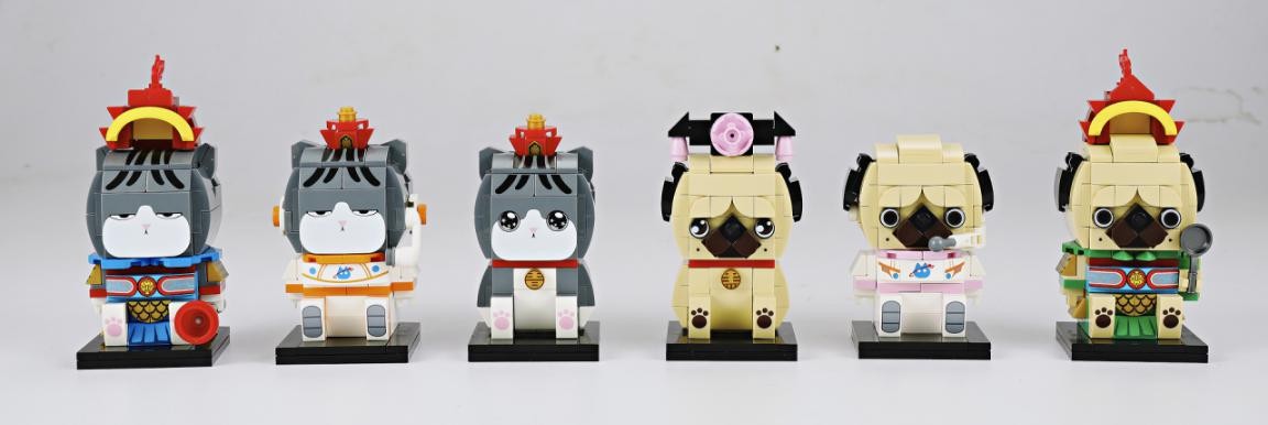 以“吾皇”經典形象為設定參考,通過積木拼搭來還原整體造型;配有統(tǒng)一底座。積木玩具精準地抓住了吾皇的形象外形,頭戴清朝皇冠,貓咪身體條紋細節(jié)得以精美戰(zhàn)線,不少細節(jié)也通過移印技術得以展現。